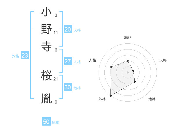 小野寺 桜胤さんの外格は23画の5点!