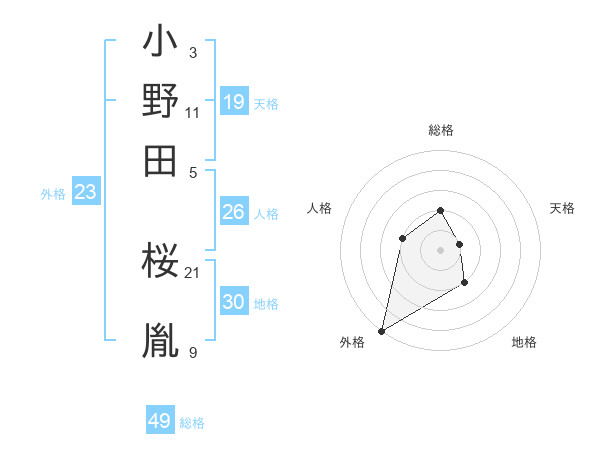 小野田 桜胤さんを姓名の画数から五運を鑑定
