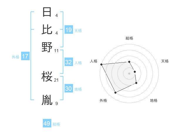 日比野 桜胤さんの総格は49画の2点