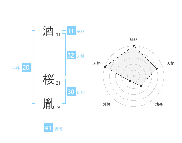 酒 桜胤さんの総格は41画の5点!