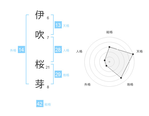 伊吹 桜芽さんの天格は13画の5点!