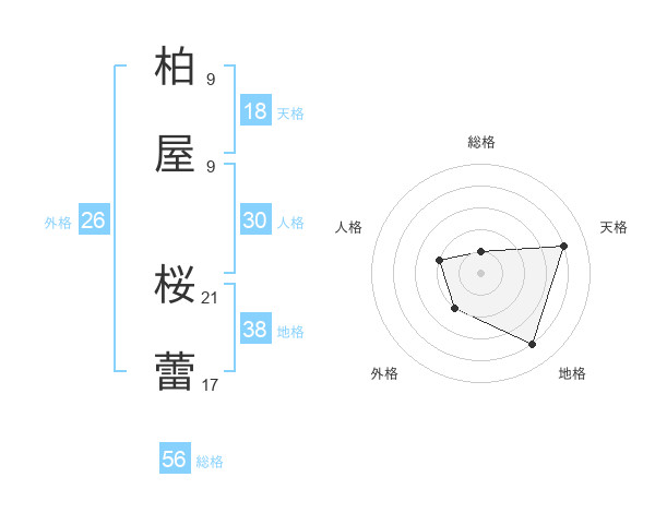 柏屋 桜蕾さんを姓名の画数から五運を鑑定