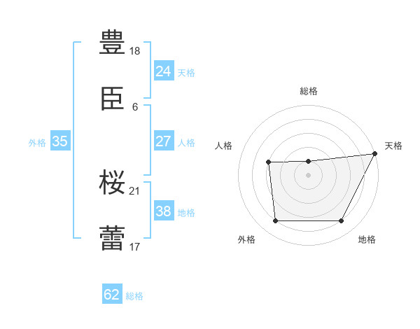 豊臣 桜蕾さんを姓名の画数から五運を鑑定