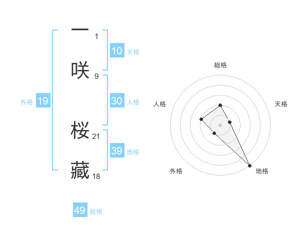 一咲 桜藏さんの地格は39画の5点!