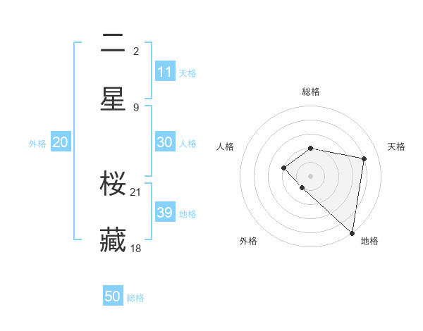 二星 桜藏さんを姓名の画数から五運を鑑定