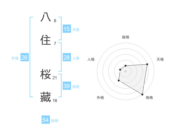 八住 桜藏さんの総格は54画の1点!