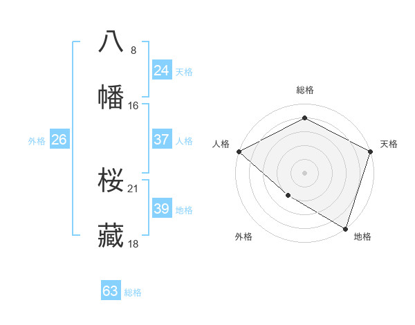 八幡 桜藏さんを姓名の画数から五運を鑑定