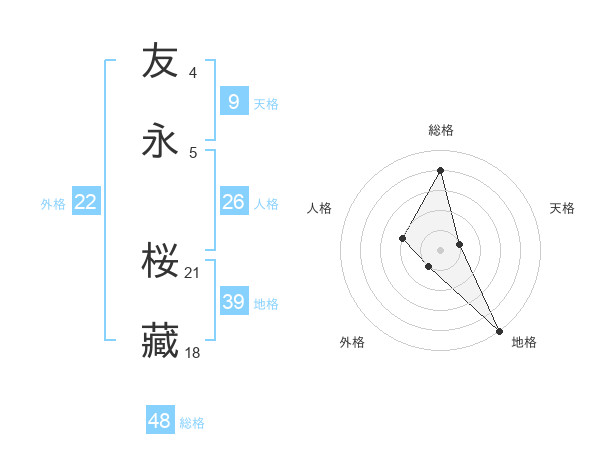 友永 桜藏さんを姓名の画数から五運を鑑定