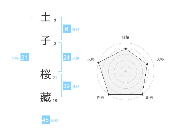 土子 桜藏さんの総格は45画の4点!