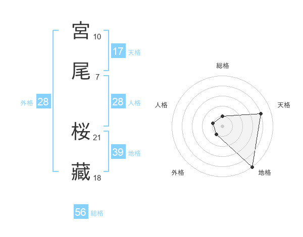 宮尾 桜藏さんを姓名の画数から五運を鑑定