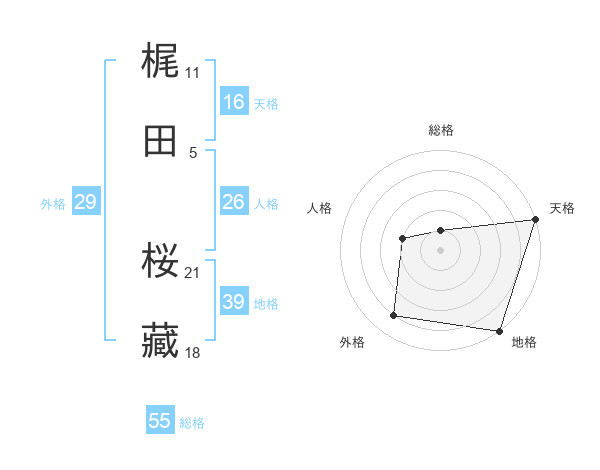 梶田 桜藏さんを姓名の画数から五運を鑑定