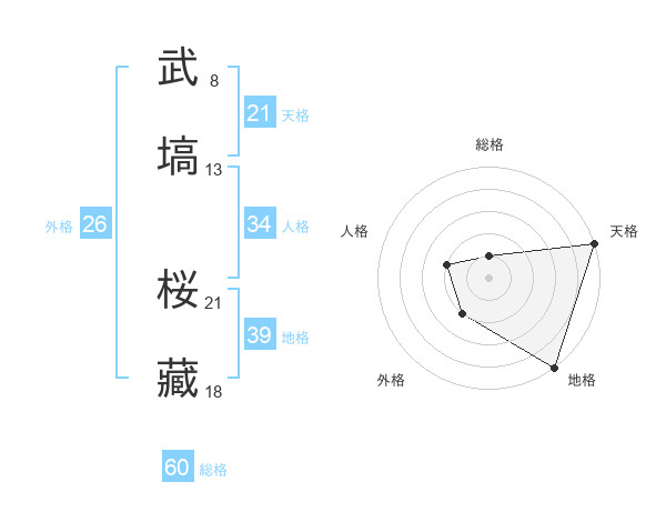 武塙 桜藏さんを姓名の画数から五運を鑑定