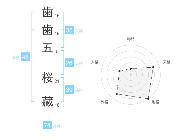 歯歯五 桜藏さんの総格は74画の1点!