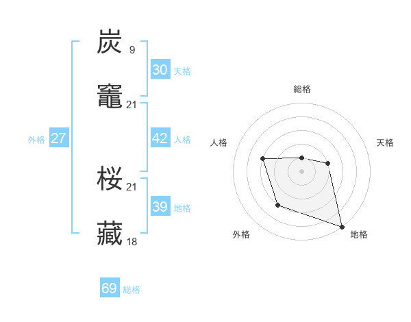 炭竈 桜藏さんの総格は69画の1点!