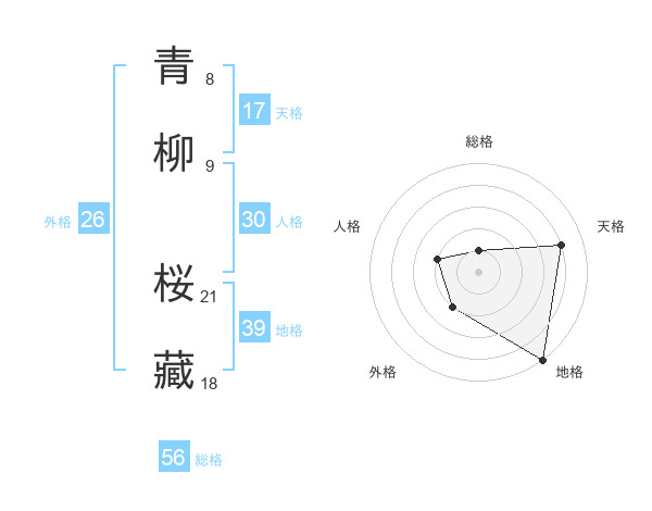 青柳 桜藏さんの総格は56画の1点!
