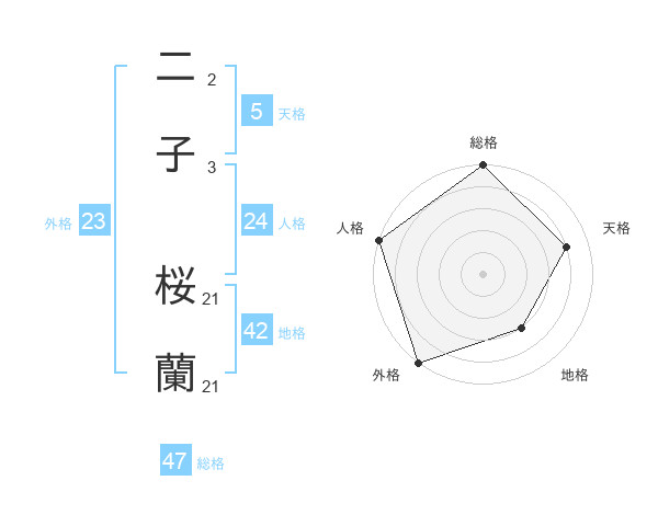 二子 桜蘭さんを姓名の画数から五運を鑑定