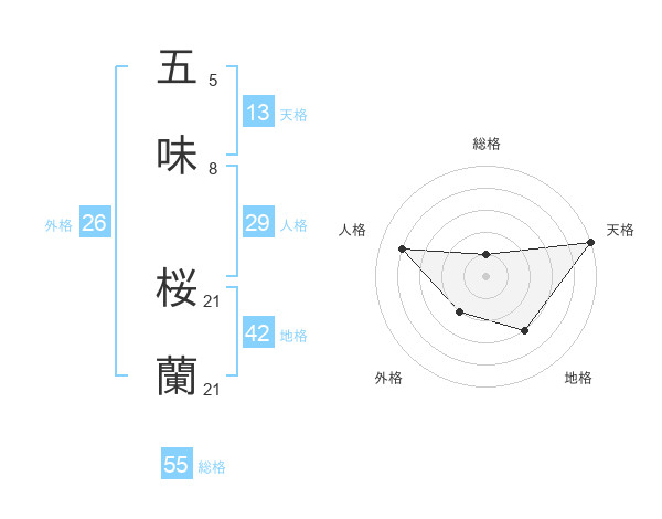五味 桜蘭さんを姓名の画数から五運を鑑定