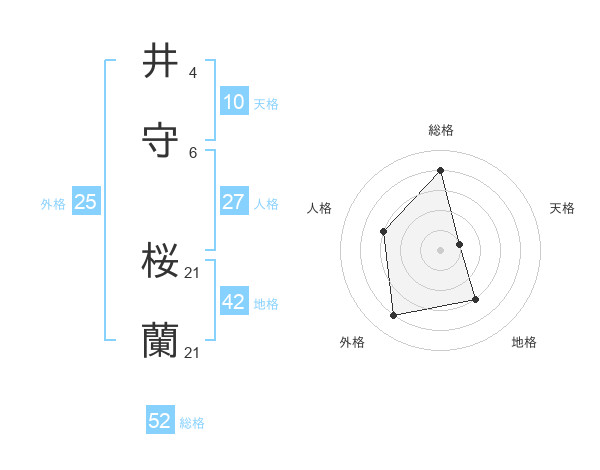 井守 桜蘭さんの総格は52画の4点!