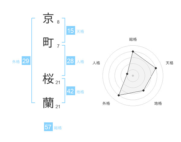 京町 桜蘭さんを姓名の画数から五運を鑑定