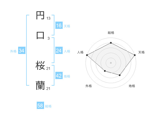 円口 桜蘭さんの総格は58画の4点!