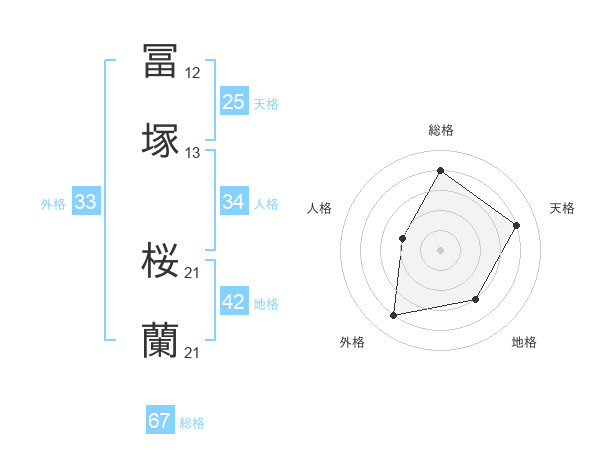 冨塚 桜蘭さんの総格は67画の4点!