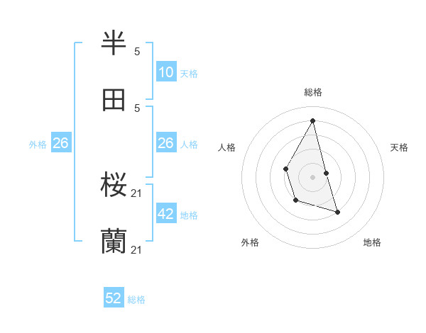 半田 桜蘭さんを姓名の画数から五運を鑑定