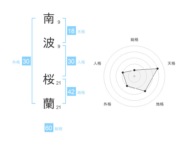 南波 桜蘭さんの総格は60画の1点!