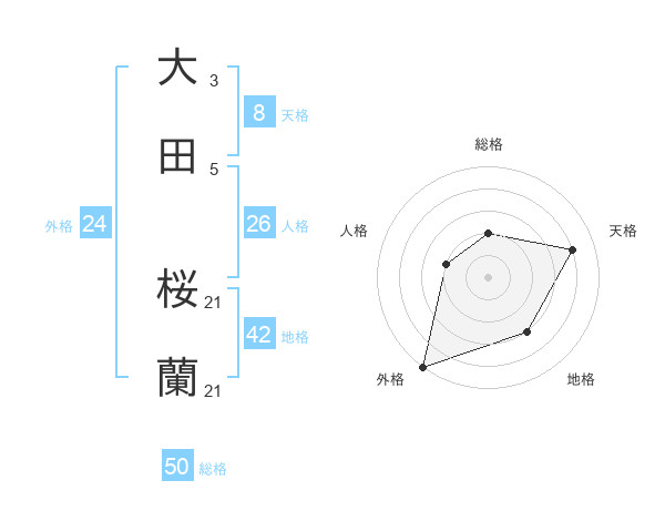 大田 桜蘭さんを姓名の画数から五運を鑑定