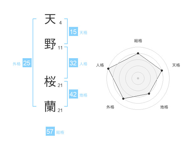 天野 桜蘭さんを姓名の画数から五運を鑑定