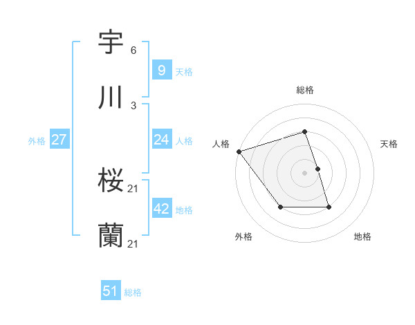 宇川 桜蘭さんの総格は51画の3点!