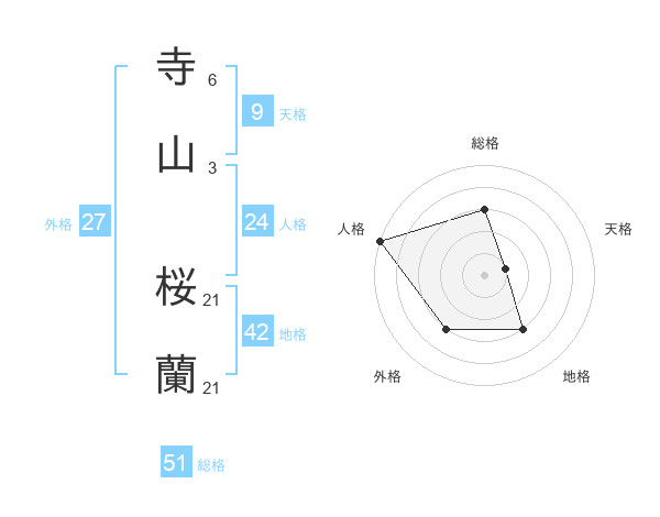 寺山 桜蘭さんの総格は51画の3点!
