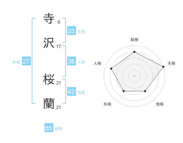 寺沢 桜蘭さんの総格は65画の4点!