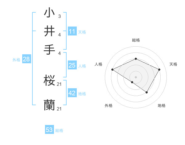 小井手 桜蘭さんを姓名の画数から五運を鑑定