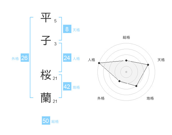 平子 桜蘭さんを姓名の画数から五運を鑑定