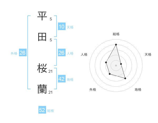 平田 桜蘭さんを姓名の画数から五運を鑑定