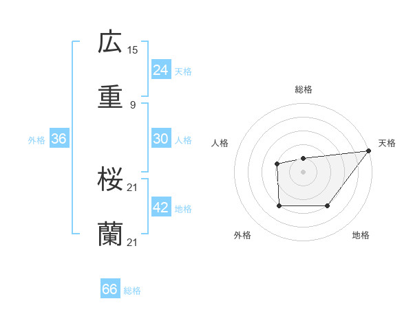 広重 桜蘭さんの総格は66画の1点!