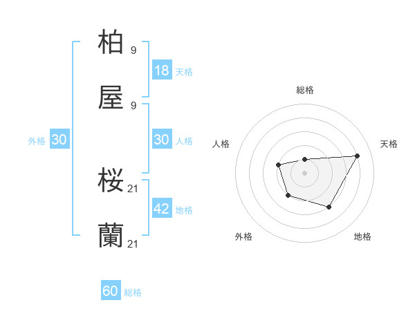 柏屋 桜蘭さんを姓名の画数から五運を鑑定