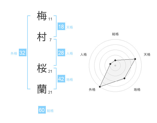 梅村 桜蘭さんの総格は60画の1点!