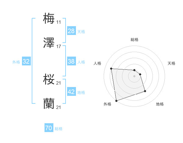 梅澤 桜蘭さんの外格は32画の5点!