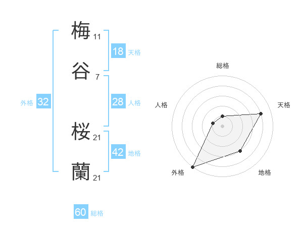 梅谷 桜蘭さんを姓名の画数から五運を鑑定