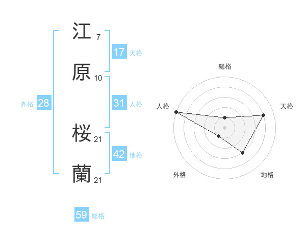江原 桜蘭さんの総格は59画の1点!