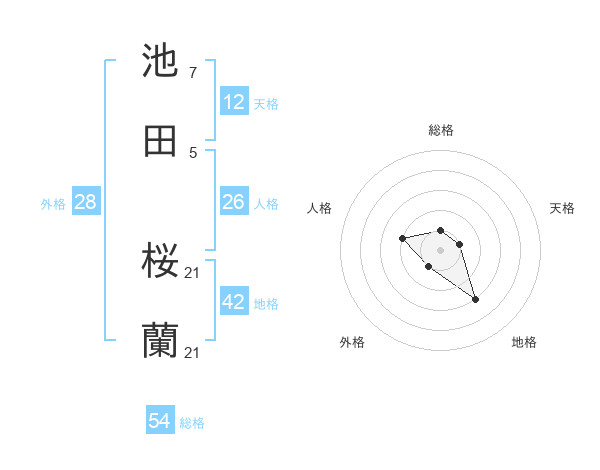 池田 桜蘭さんの地格は42画の3点!