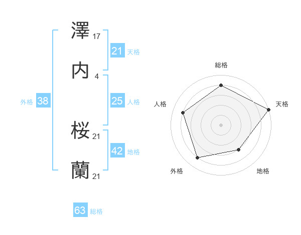 澤内 桜蘭さんの天格は21画の5点!