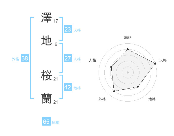 澤地 桜蘭さんの総格は65画の4点!