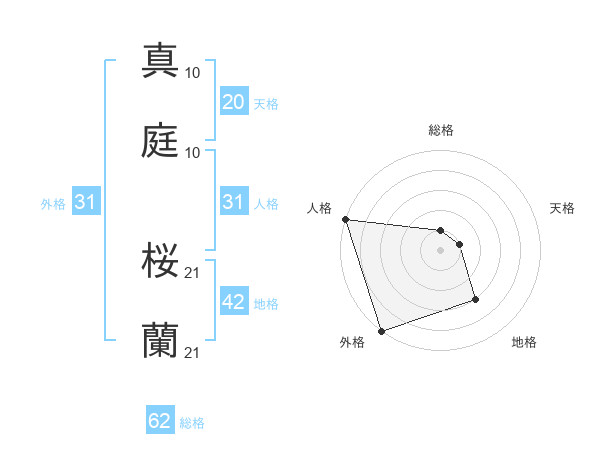 真庭 桜蘭さんの外格は31画の5点!