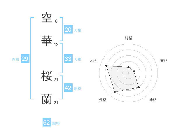 空華 桜蘭さんの総格は62画の1点!