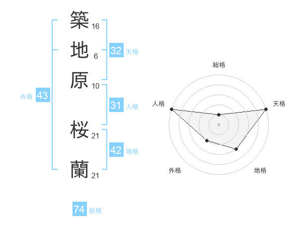 築地原 桜蘭さんの総格は74画の1点!