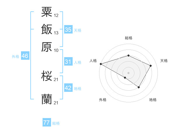 粟飯原 桜蘭さんを姓名の画数から五運を鑑定