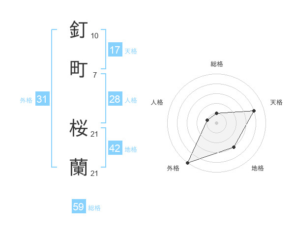 釘町 桜蘭さんを姓名の画数から五運を鑑定