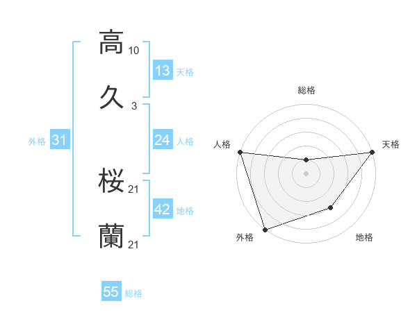 高久 桜蘭さんを姓名の画数から五運を鑑定